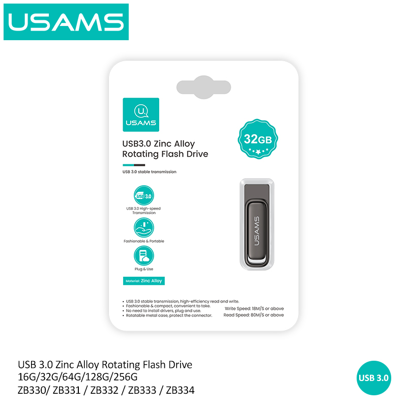 ZB330/ZB331/ZB332/ZB333/ZB334 USB3.0 锌合金旋转闪存盘