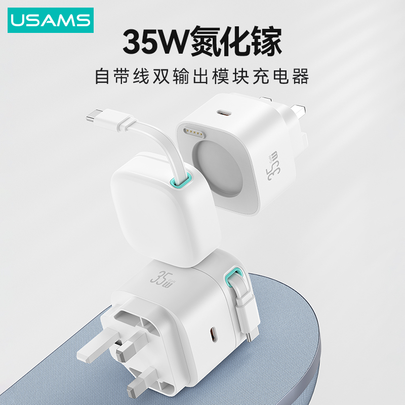 PD35W氮化镓多功能双输出Type-C磁吸收纳线充电器 星魔方系列 英规