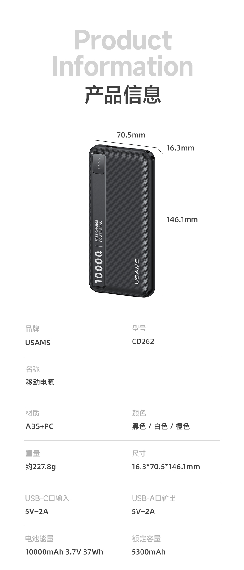 CD262 CD264 PB89 A+C双口移动电源
