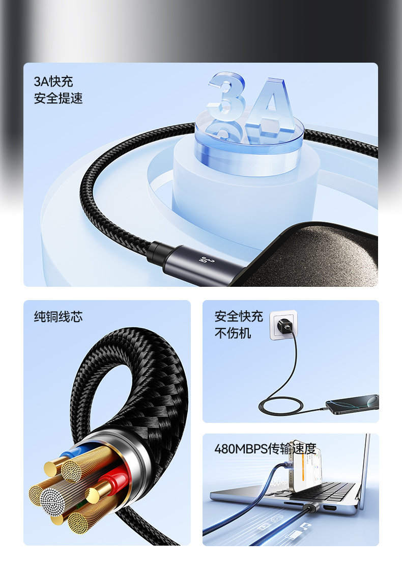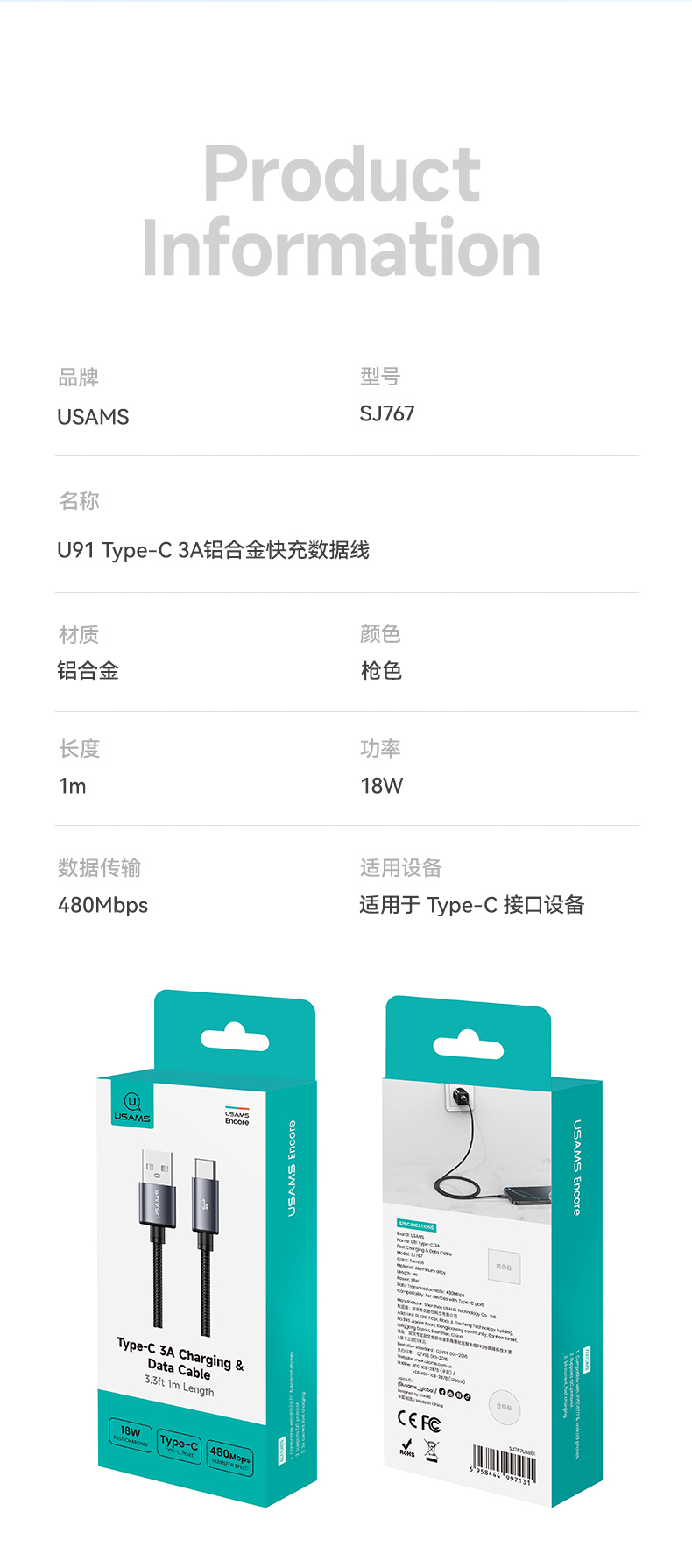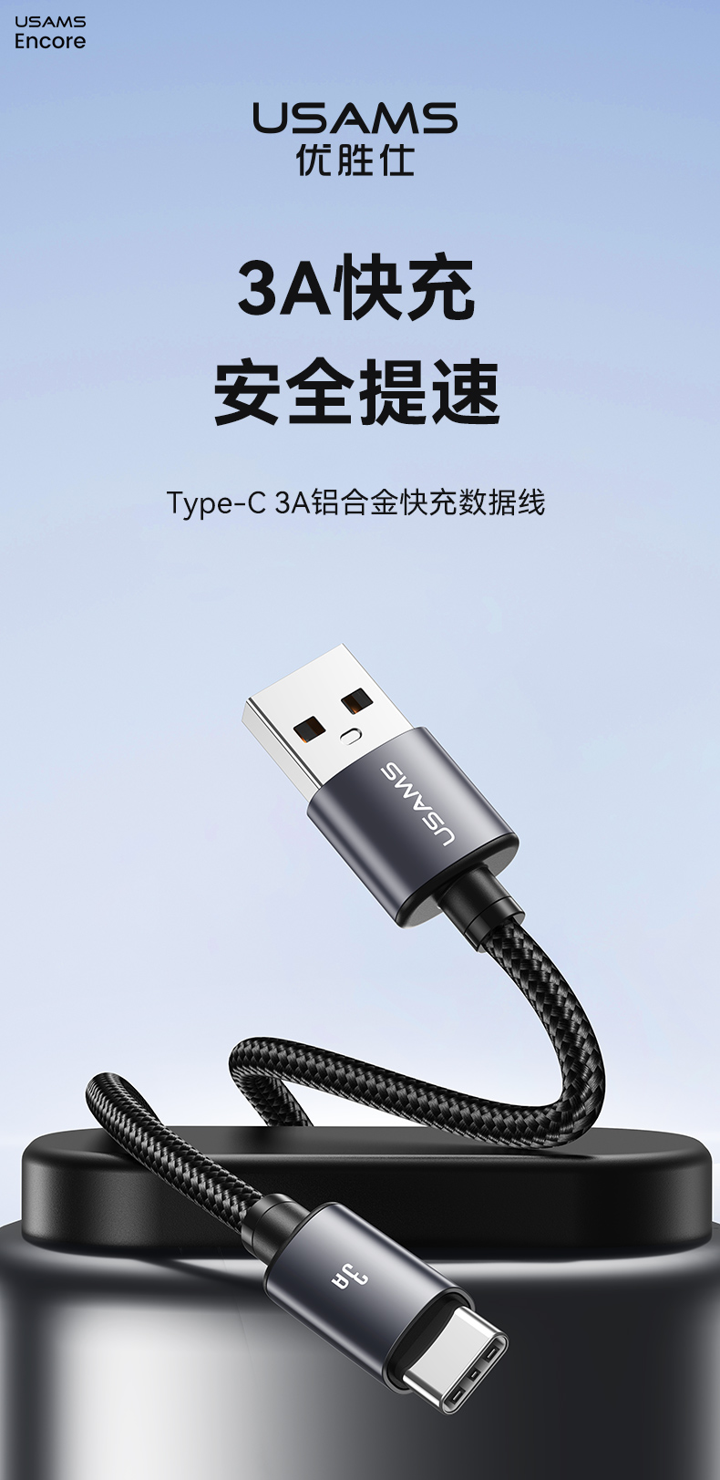SJ767 U91 Type-C 3A铝合金快充数据线