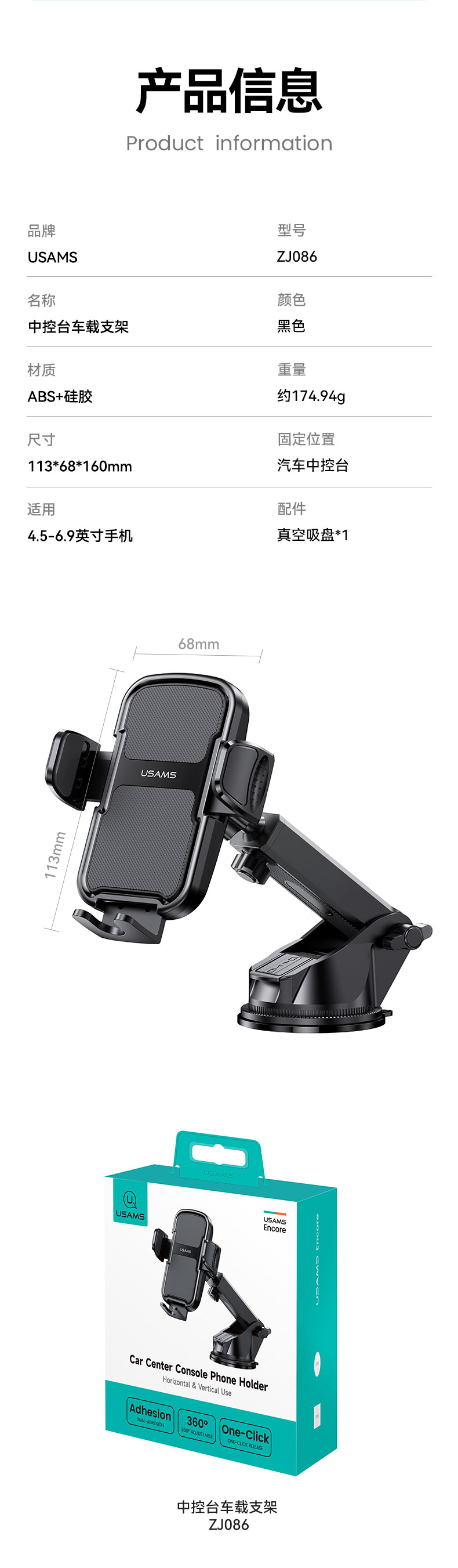 ZJ086 中控台车载手机支架