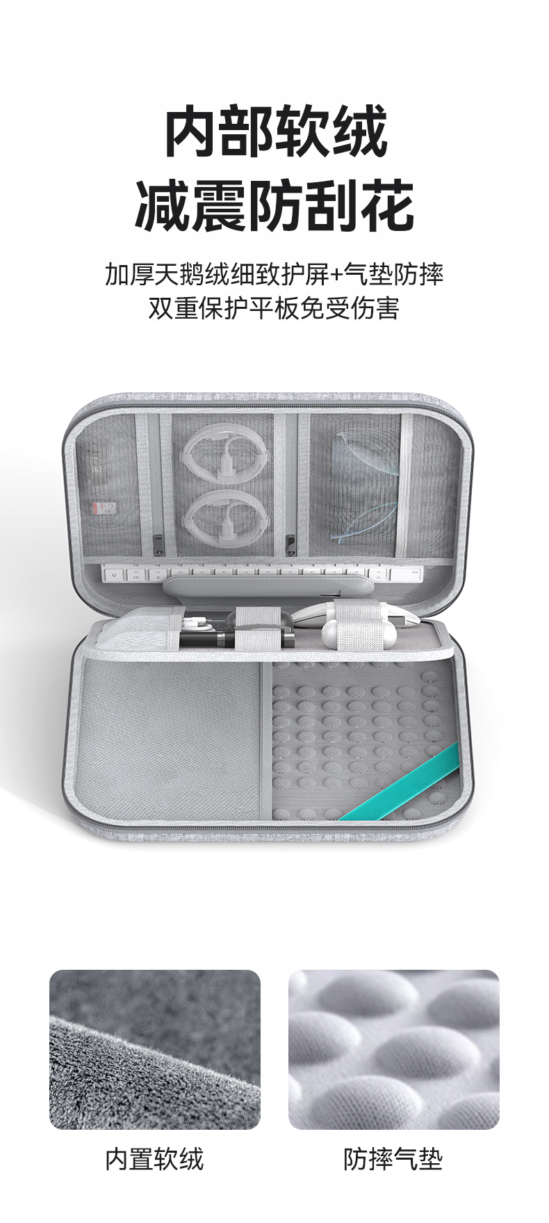 内部绒毛气垫包裹,双重缓冲保护。