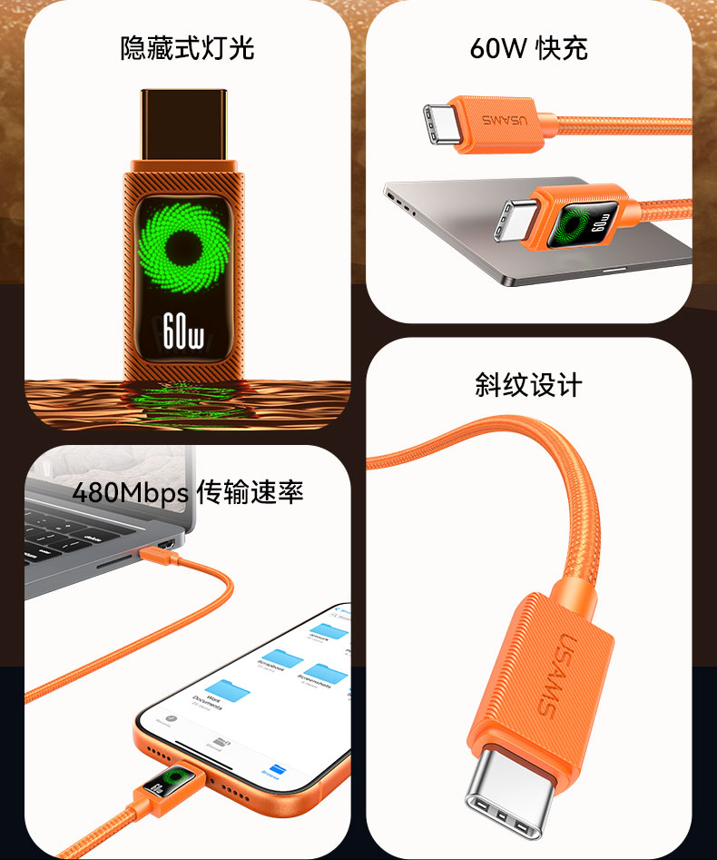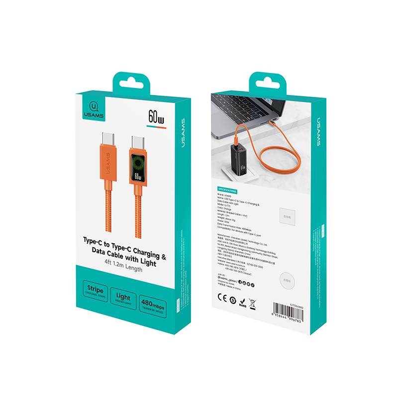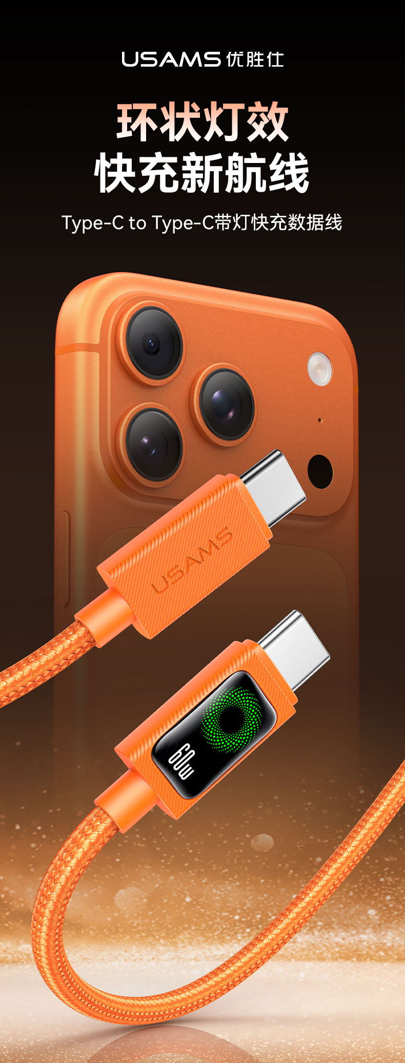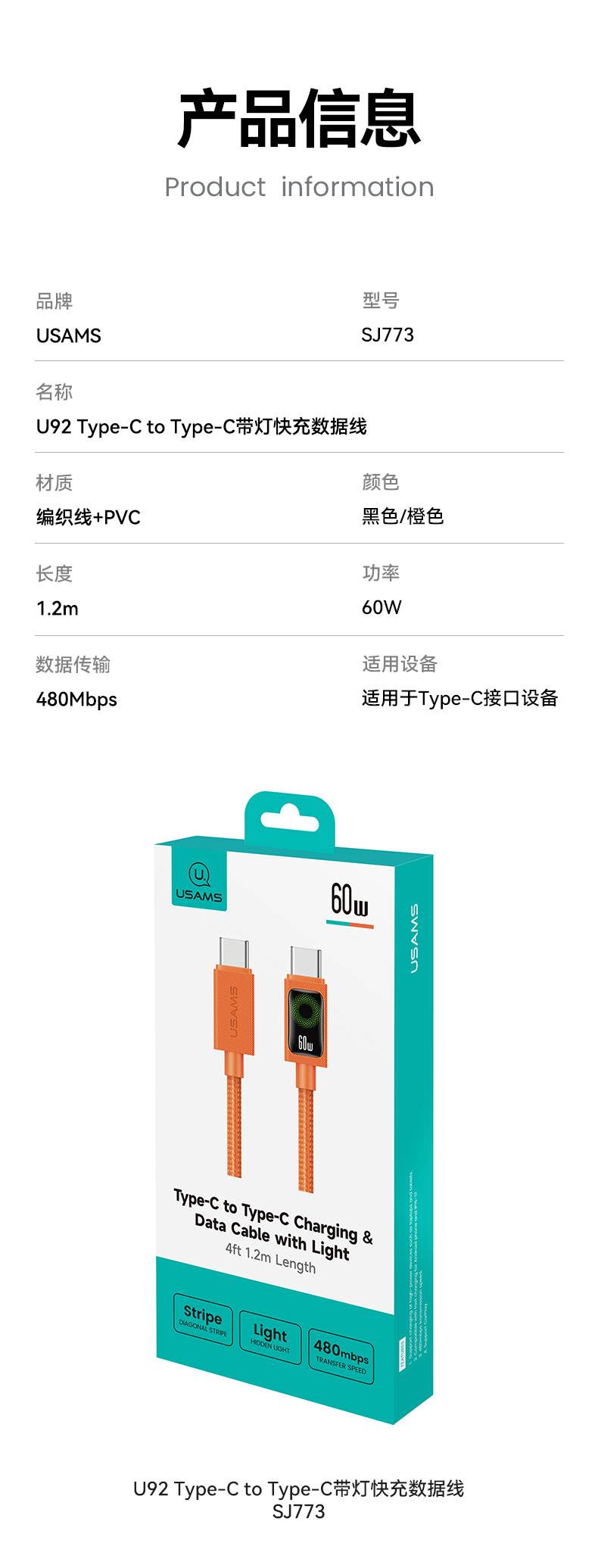 SJ773 U92 Type-C to Type-C带灯快充数据线