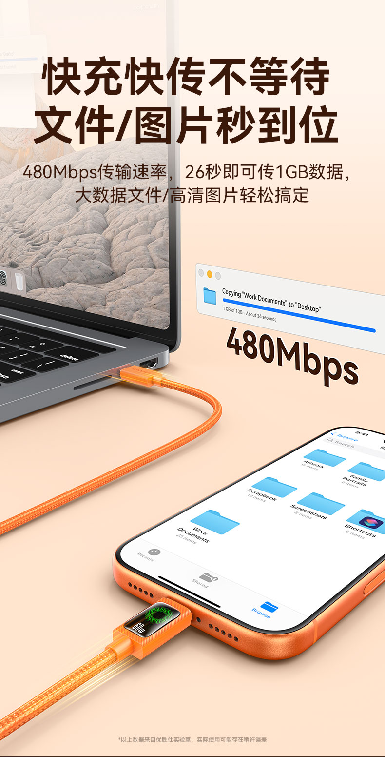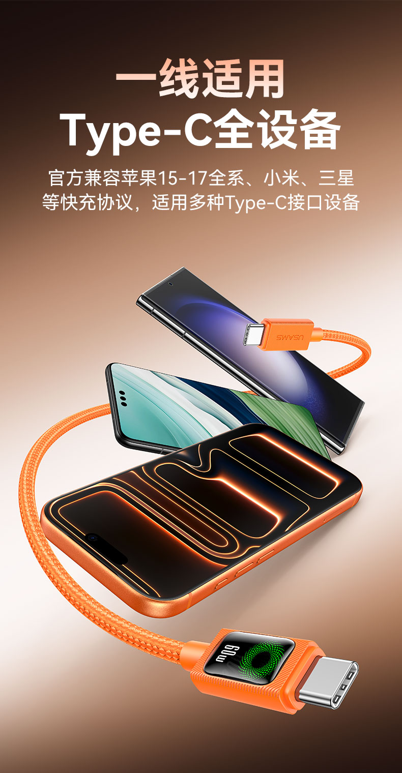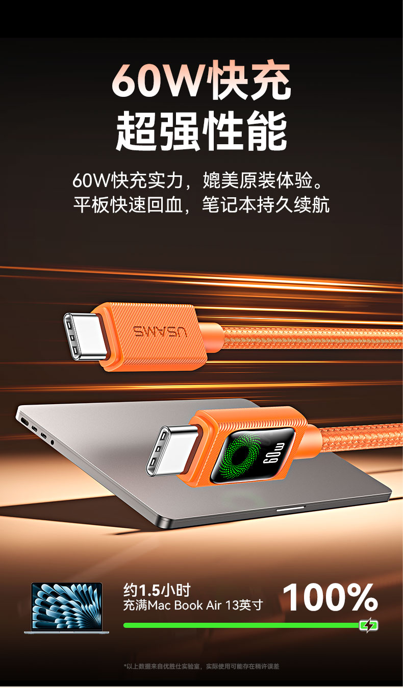 SJ773 U92 Type-C to Type-C带灯快充数据线