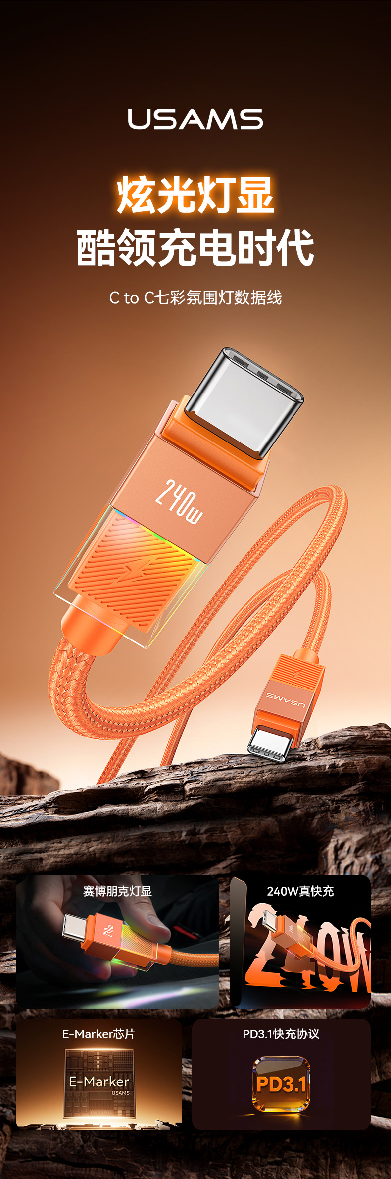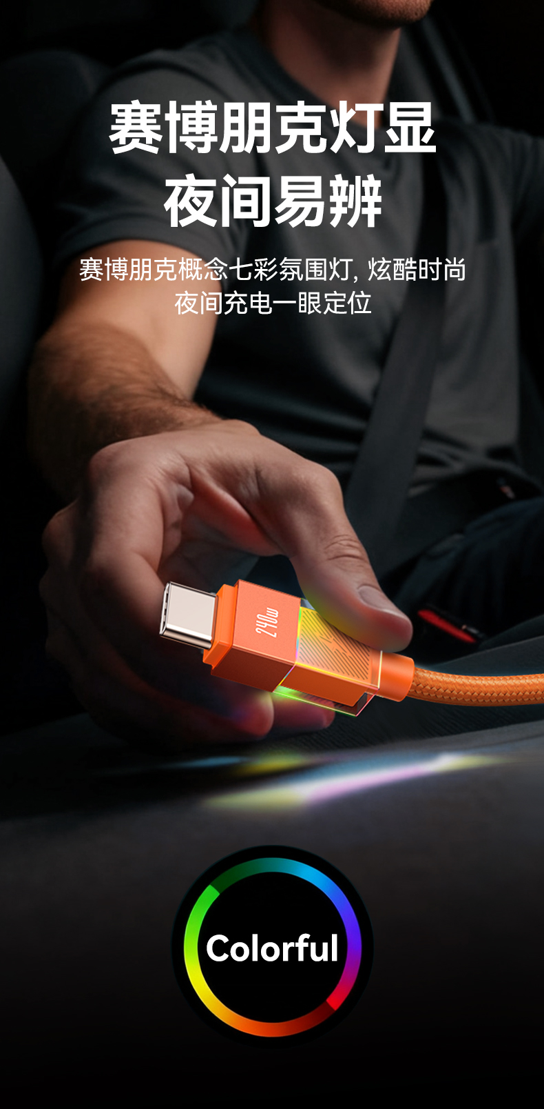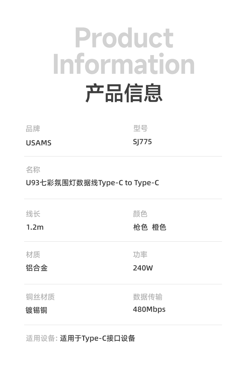 SJ775 U93七彩氛围灯数据线Type-C to Type-C