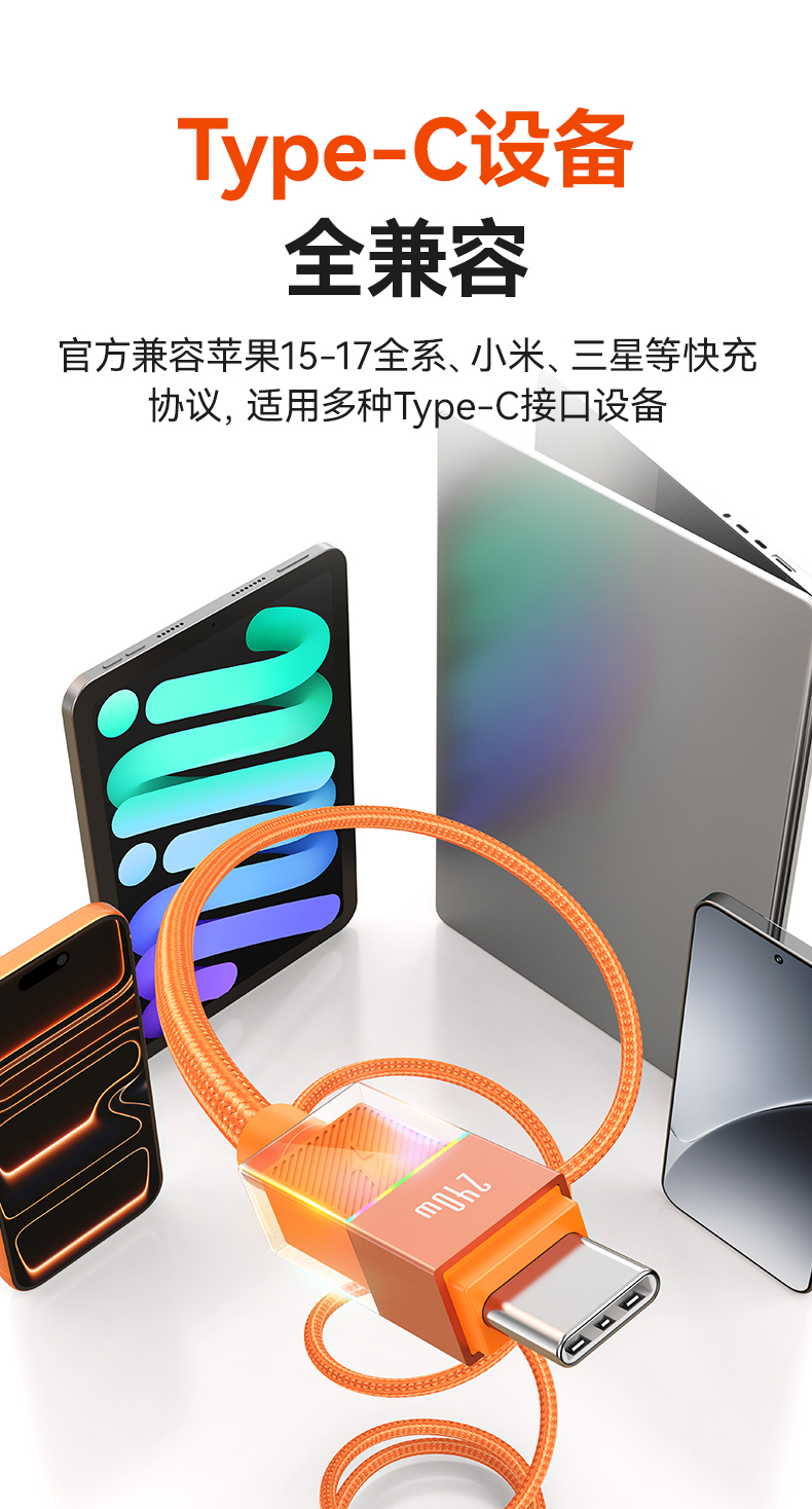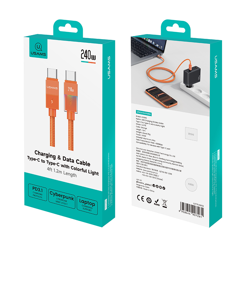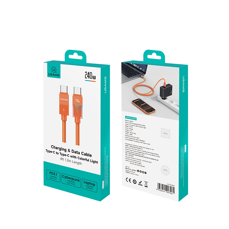 SJ773 U92 Type-C to Type-C带灯快充数据线