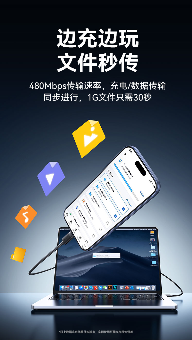 SJ781 U94 USB-C to iP斜纹快充数据线