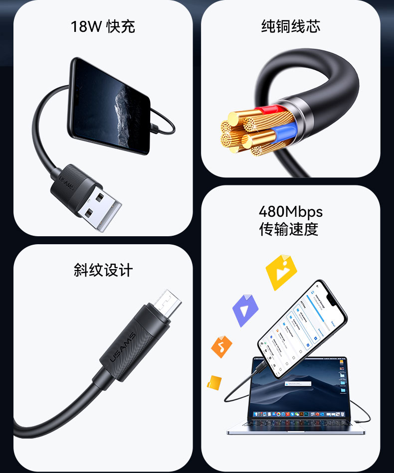 SJ779 U94 USB-A to Micro斜纹快充数据线