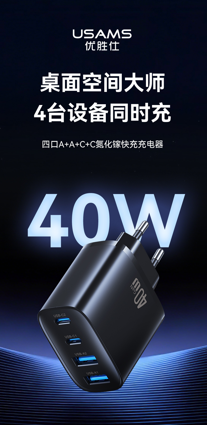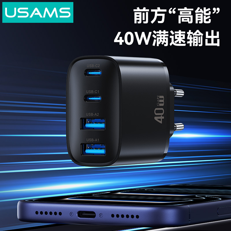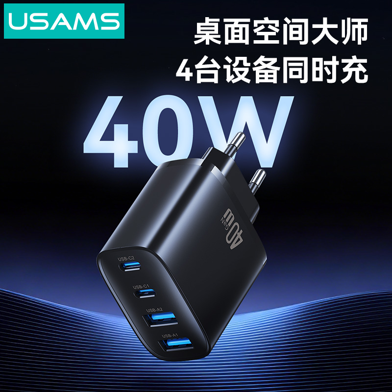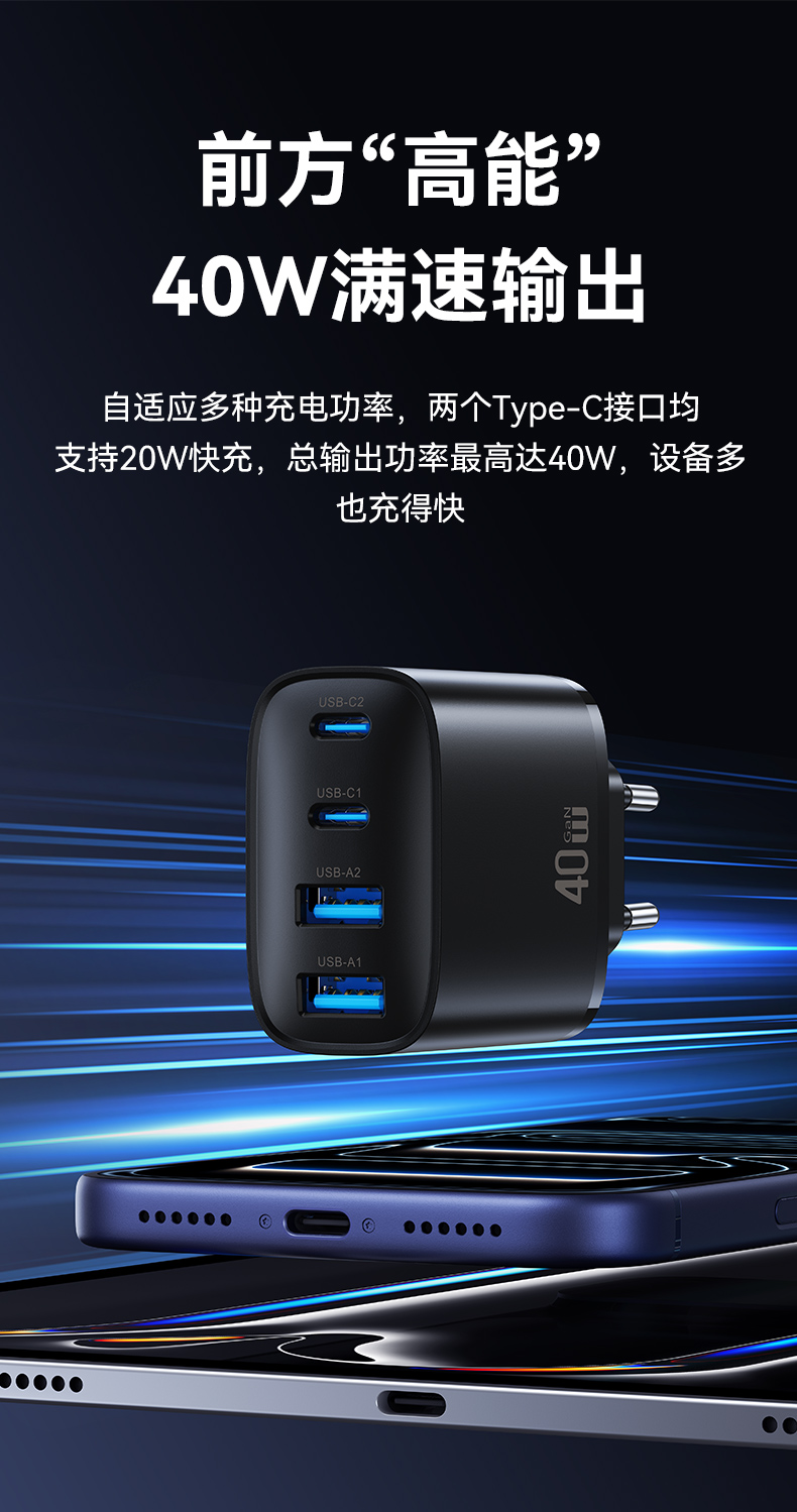 CC330 T70 40W四口A+A+C+C氮化镓快充充电器 欧规