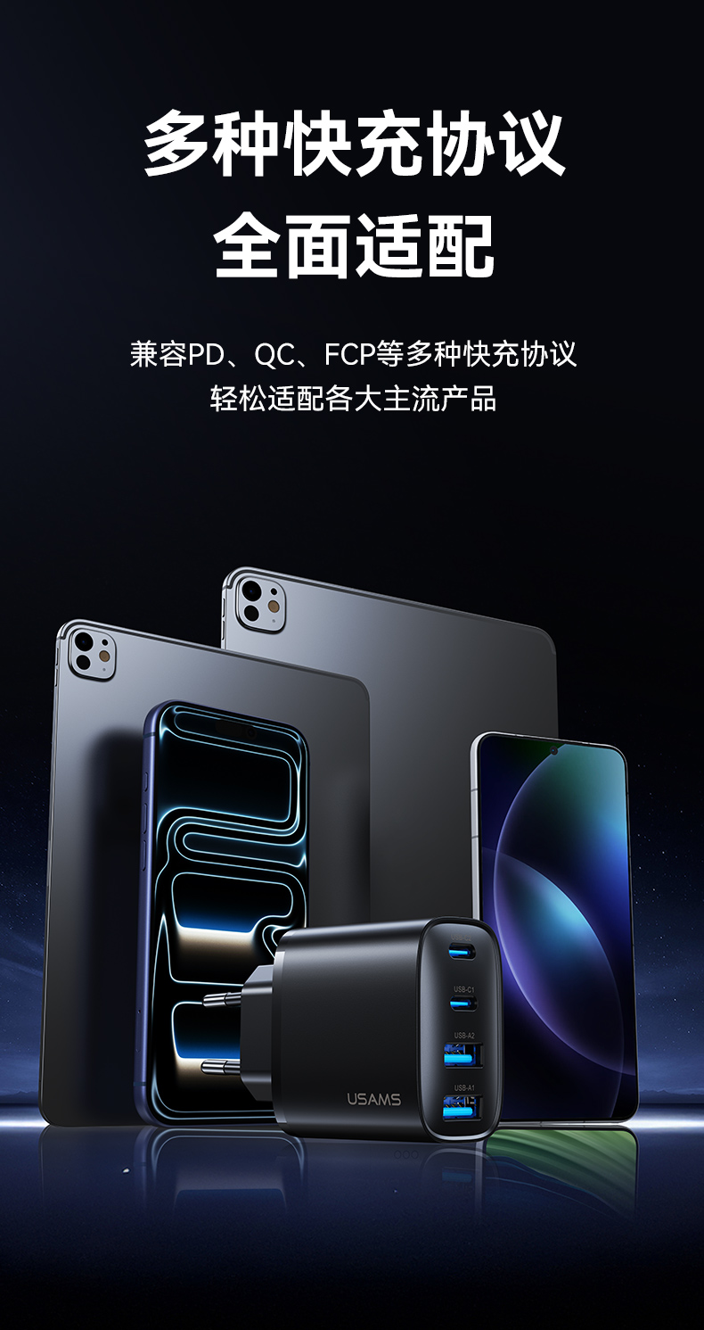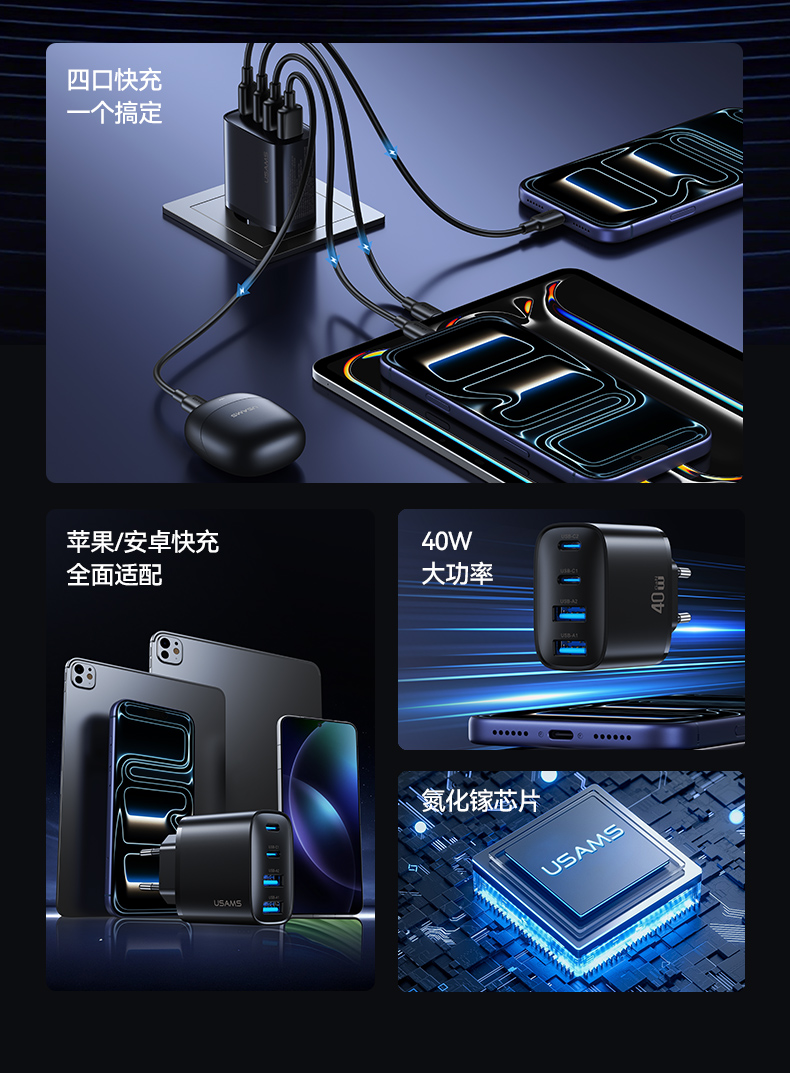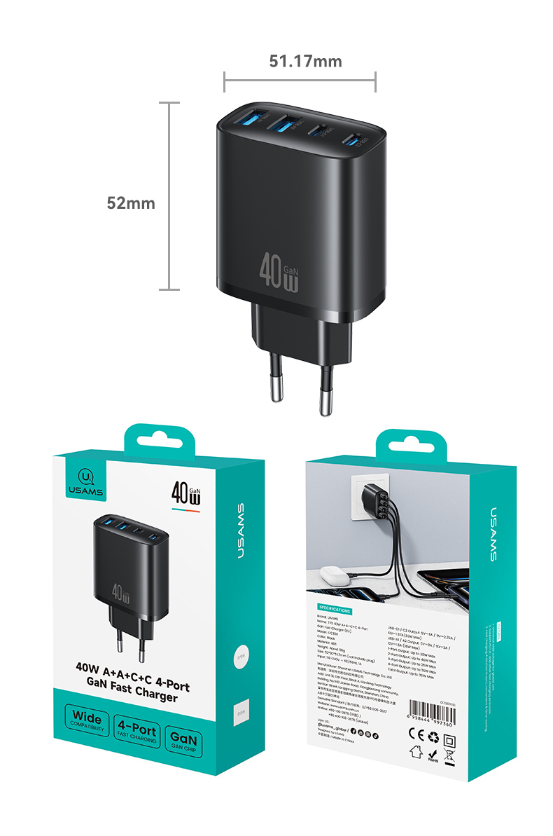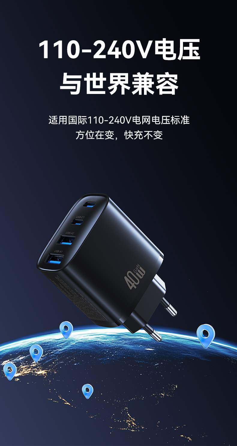 CC330 T70 40W四口A+A+C+C氮化镓快充充电器 欧规
