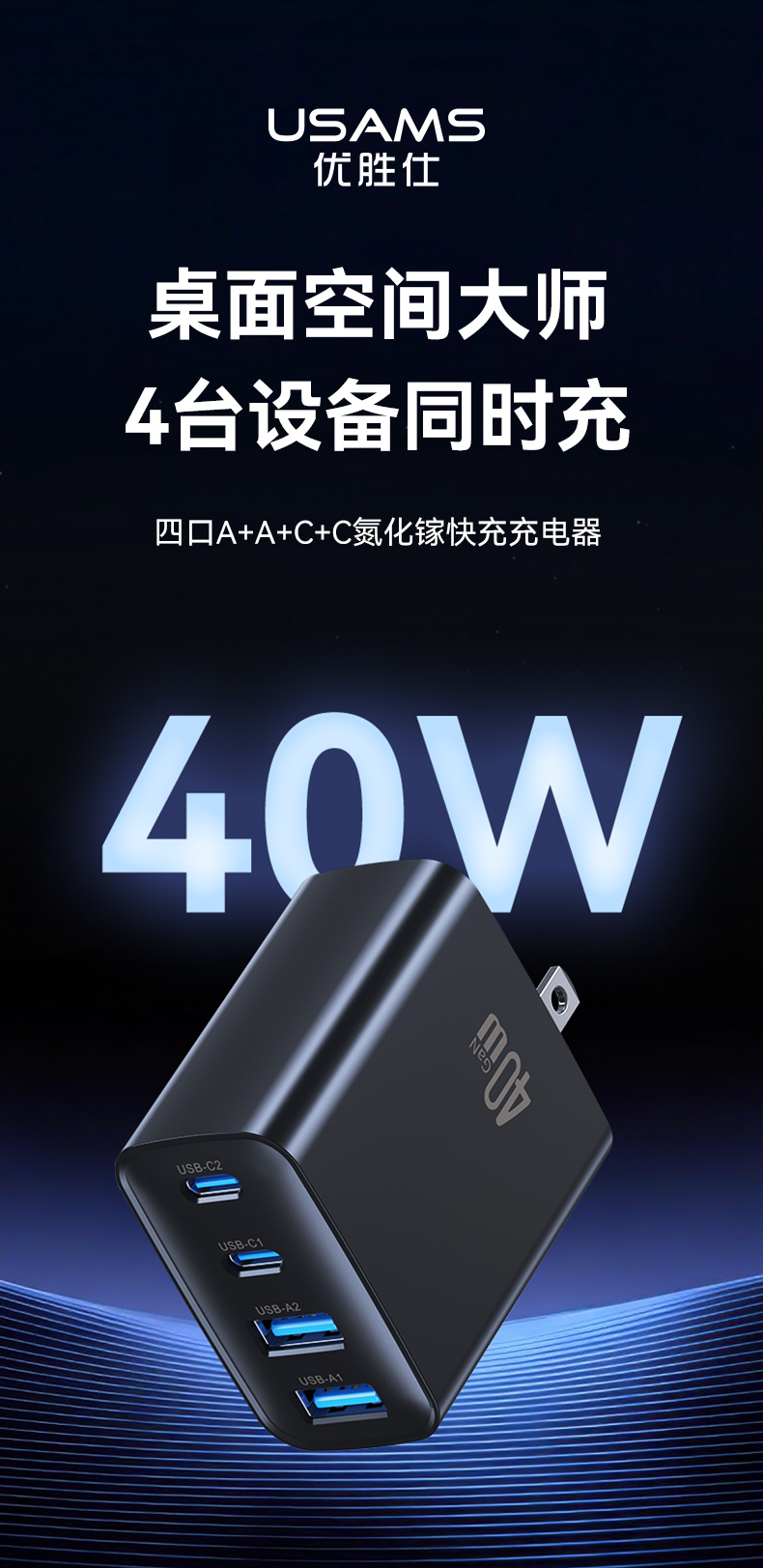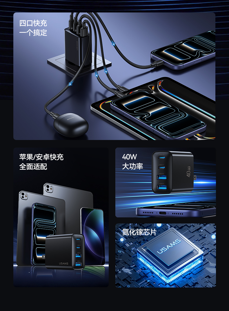 CC331 T70 40W四口快充充电器-美规