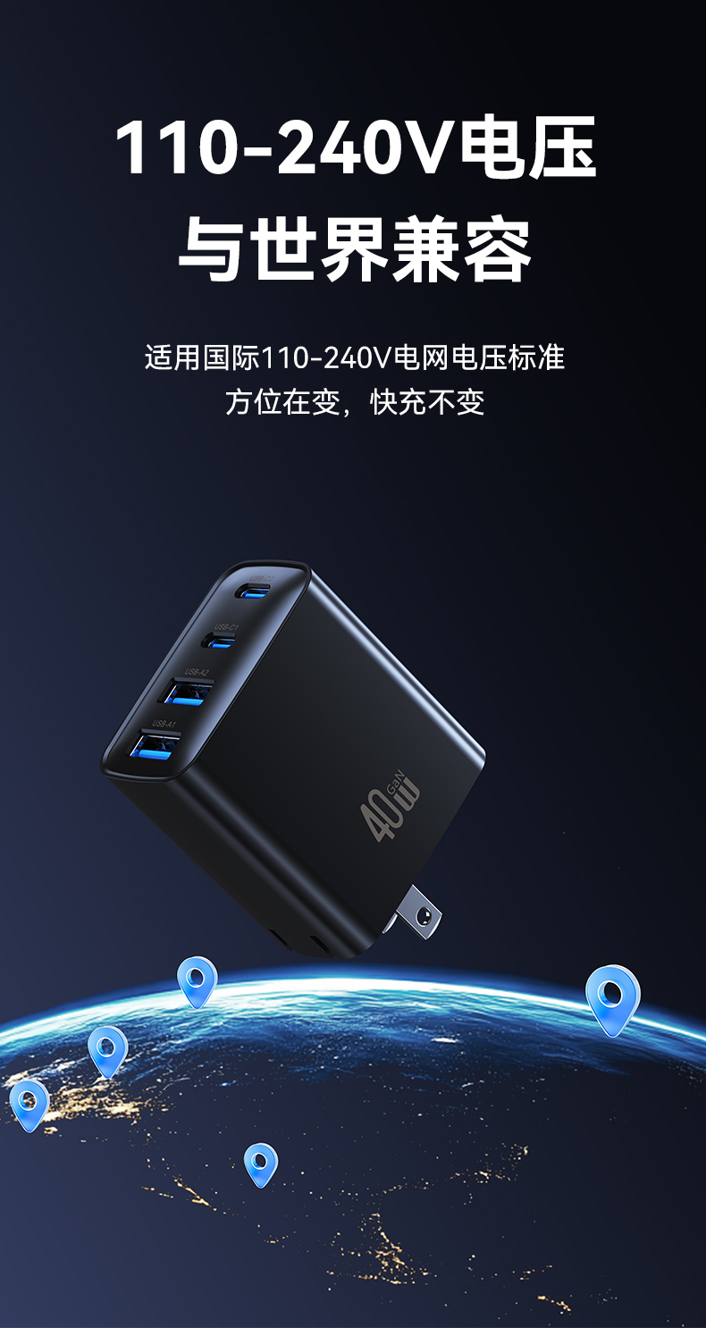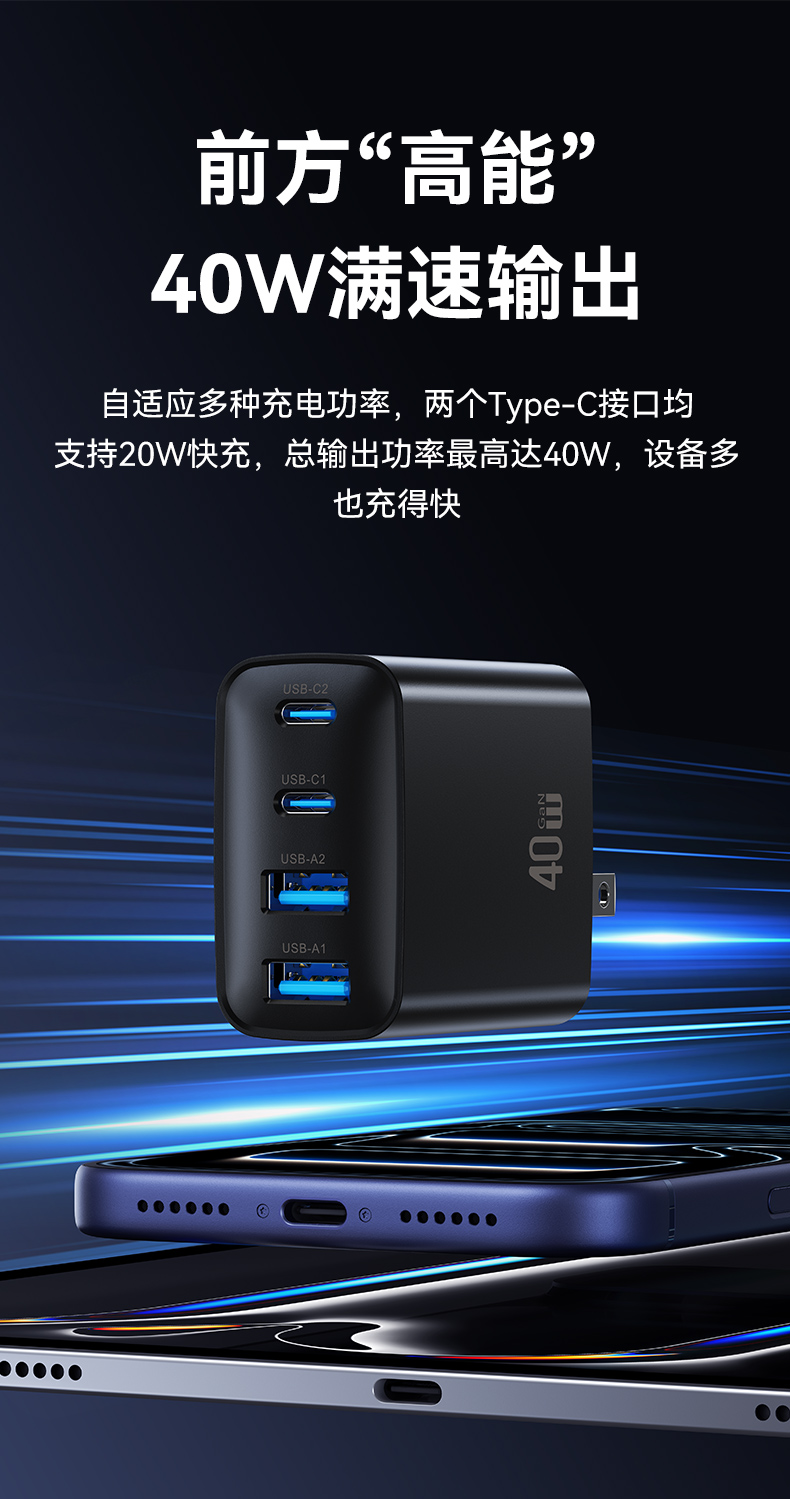 CC330 T70 40W四口A+A+C+C氮化镓快充充电器 欧规