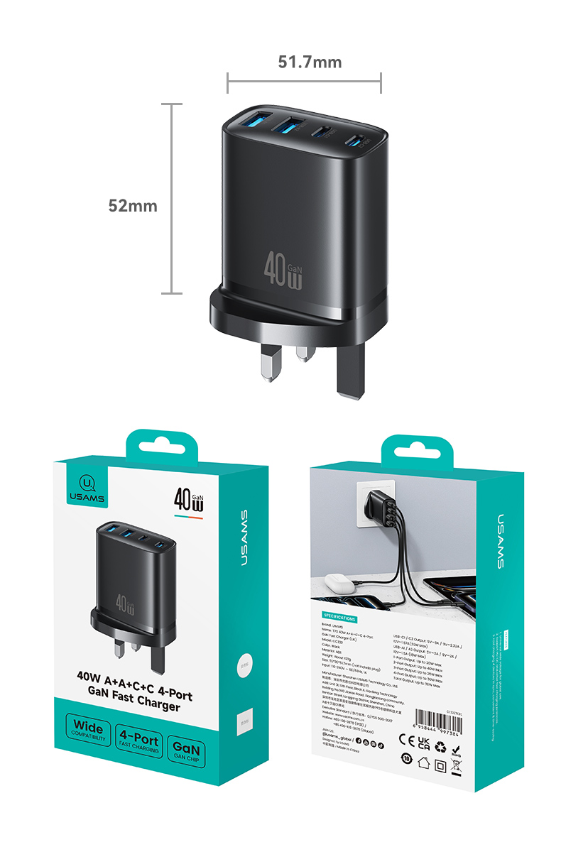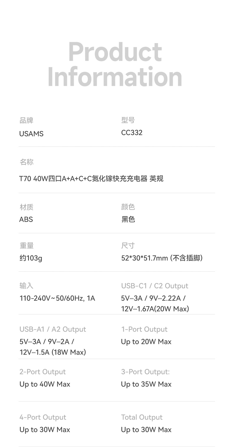 CC331 T70 40W四口快充充电器-美规
