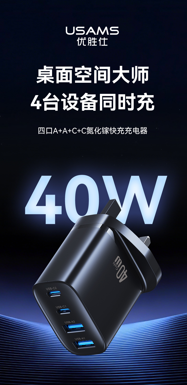 CC332 T70 40W四口氮化镓快充充电器-英规