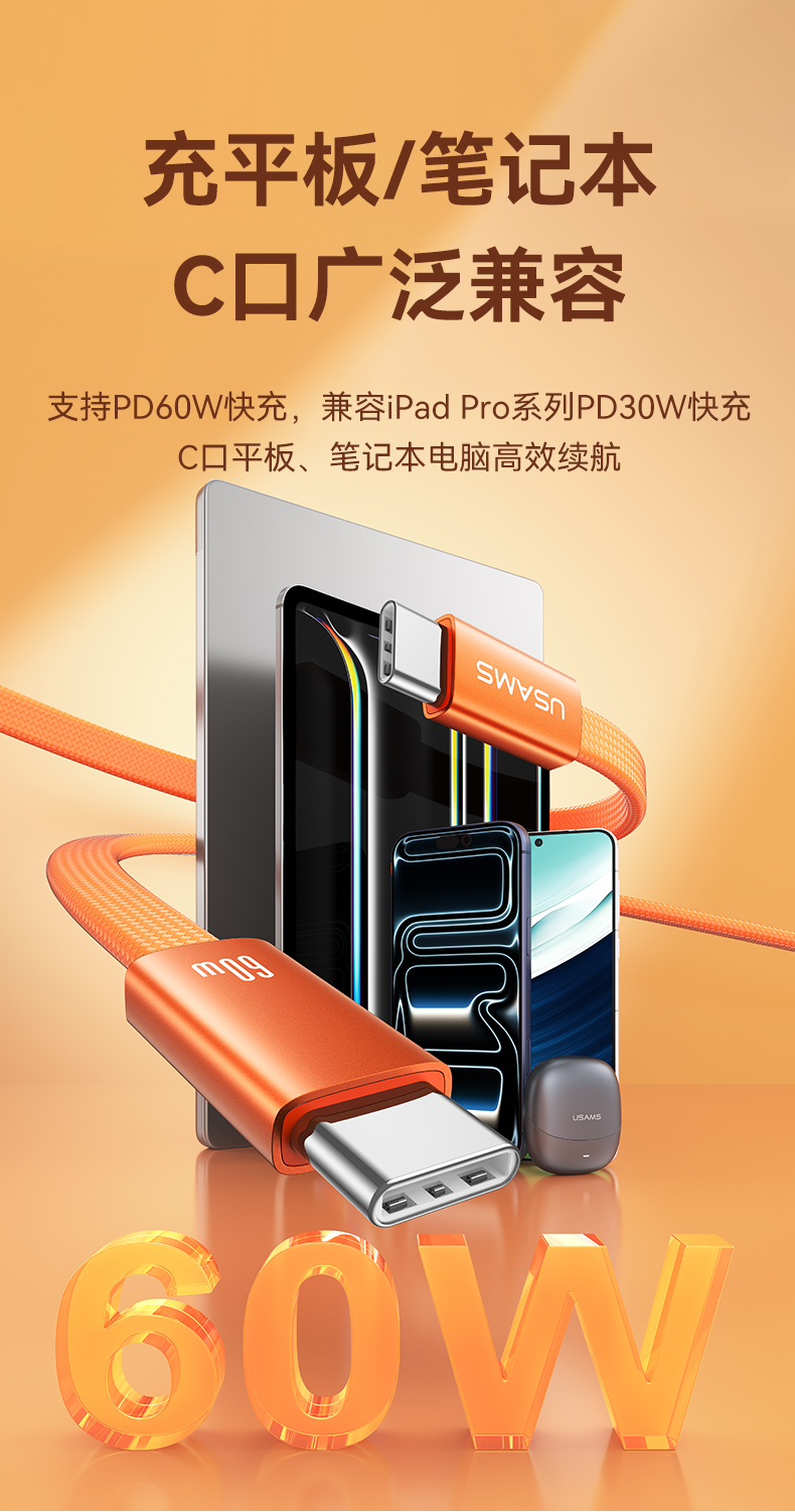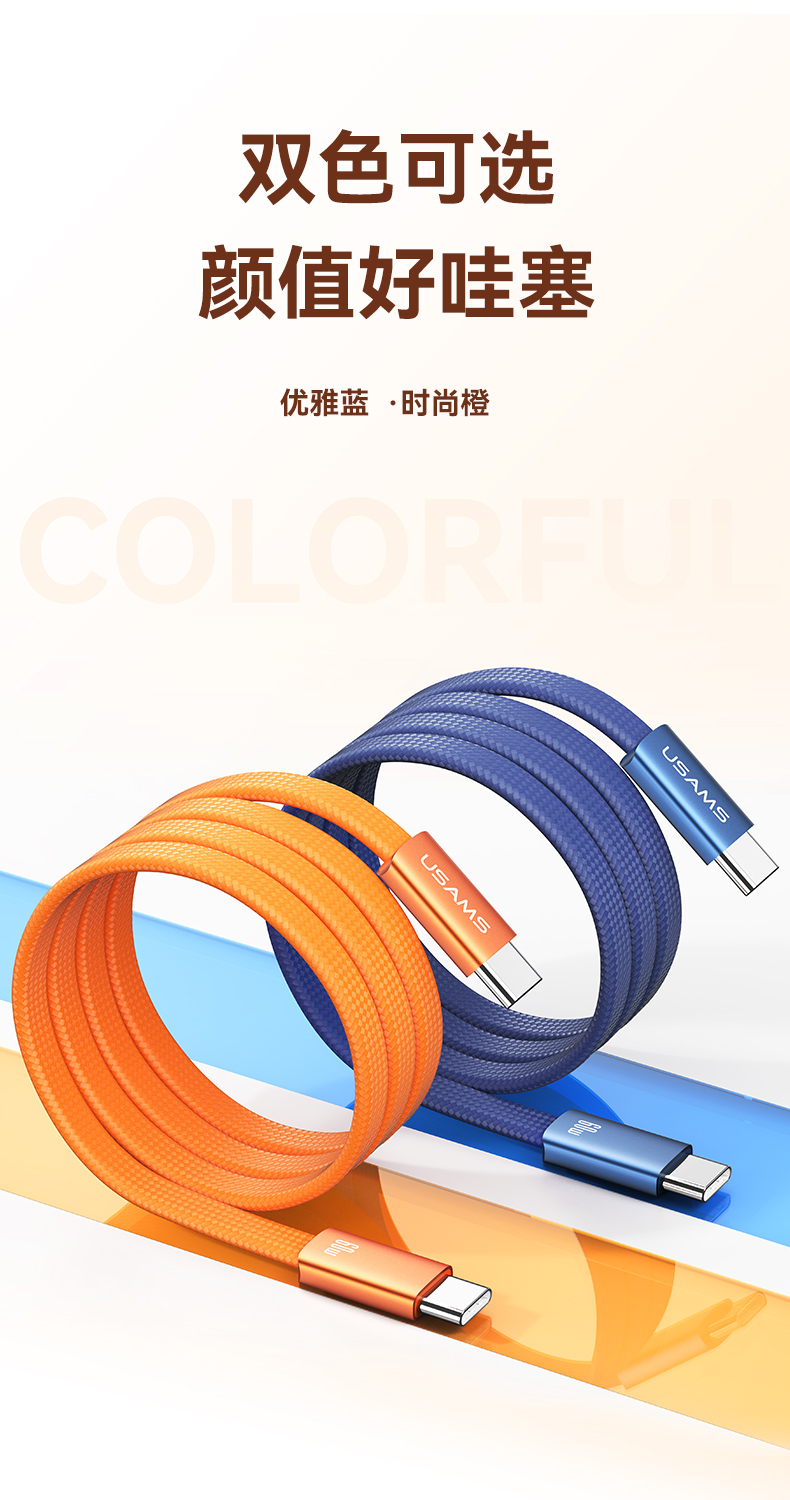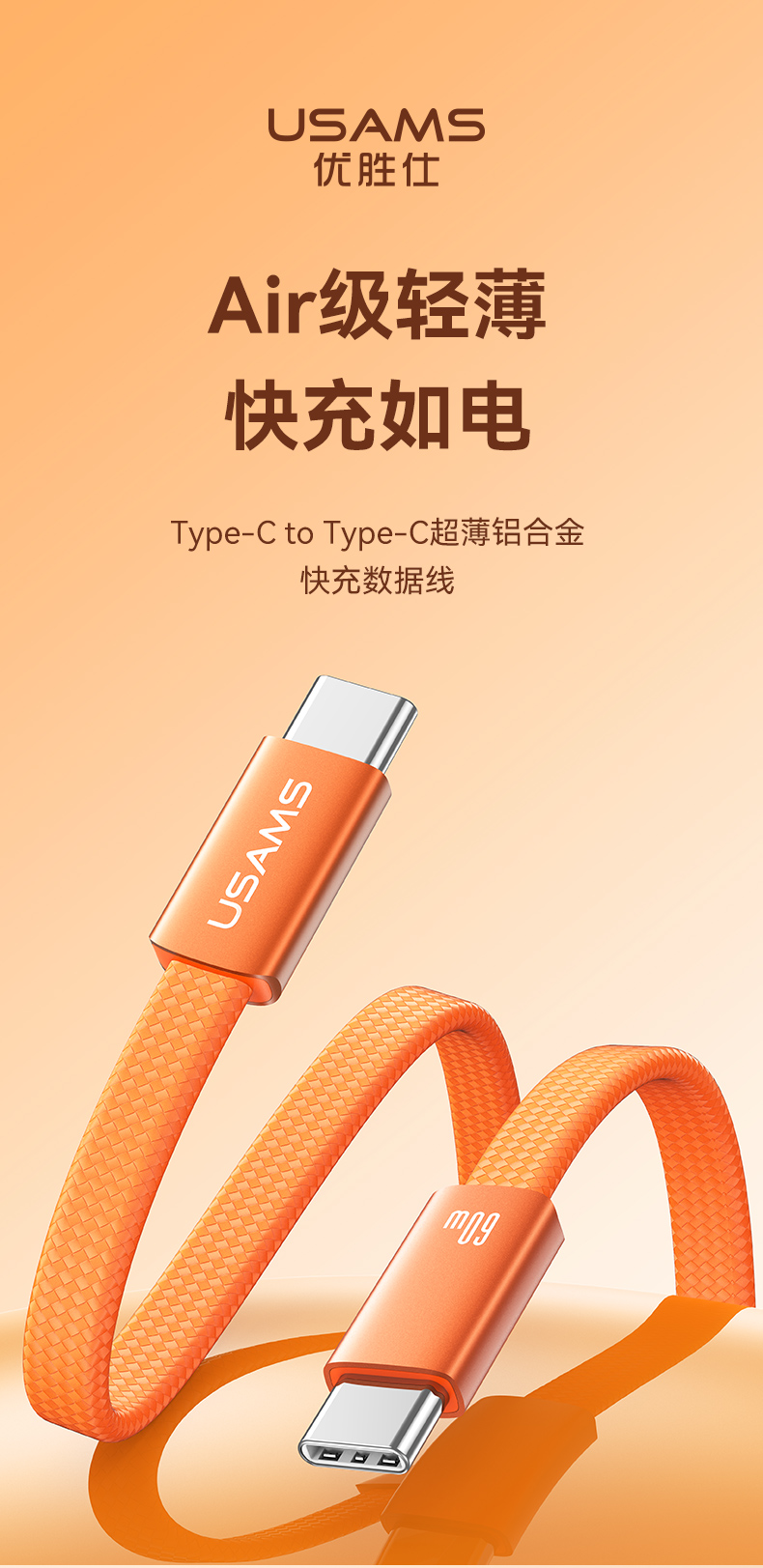 SJ783 U96 60W超薄铝合金快充数据线C TO C 1.2m