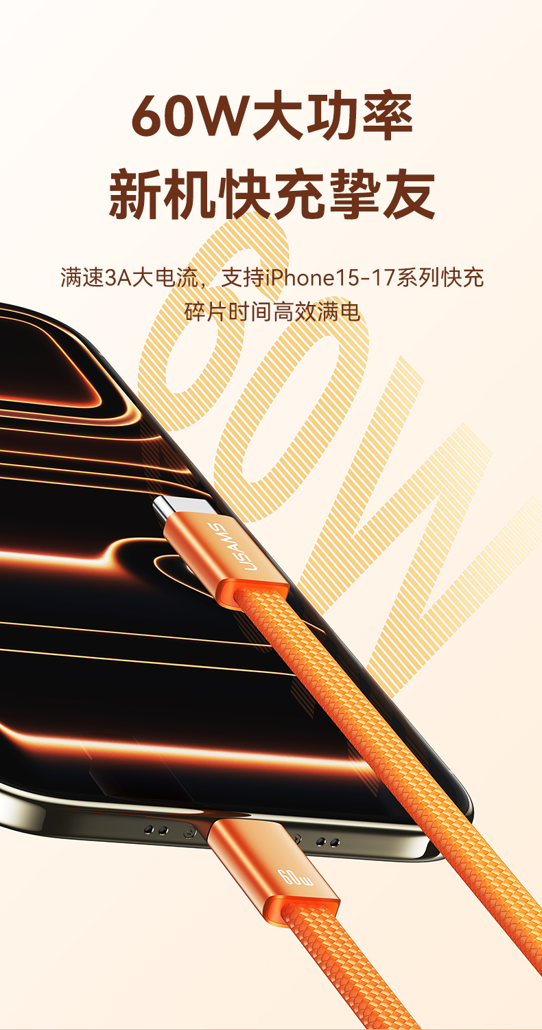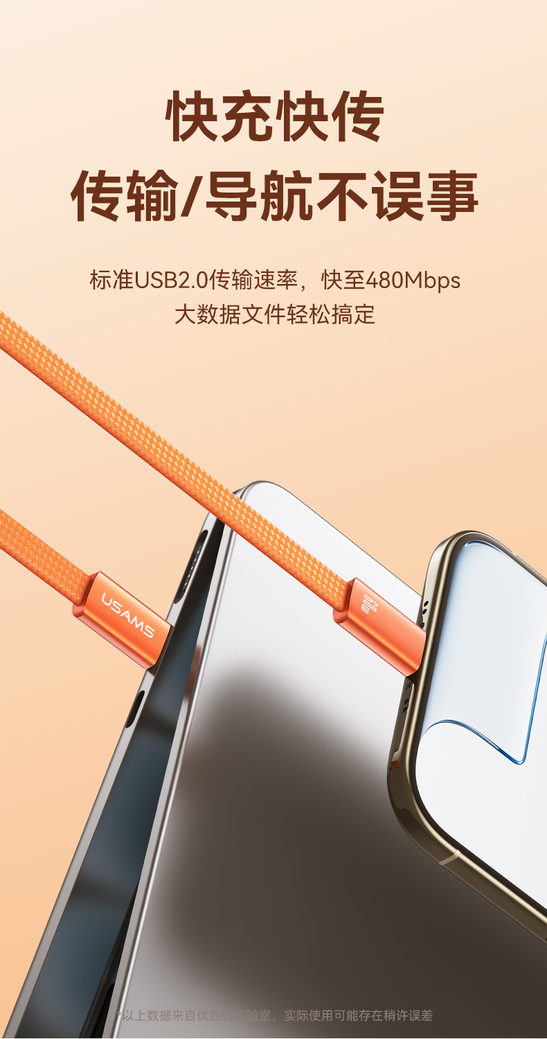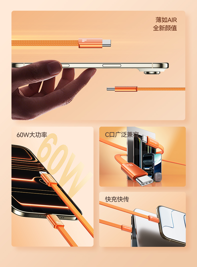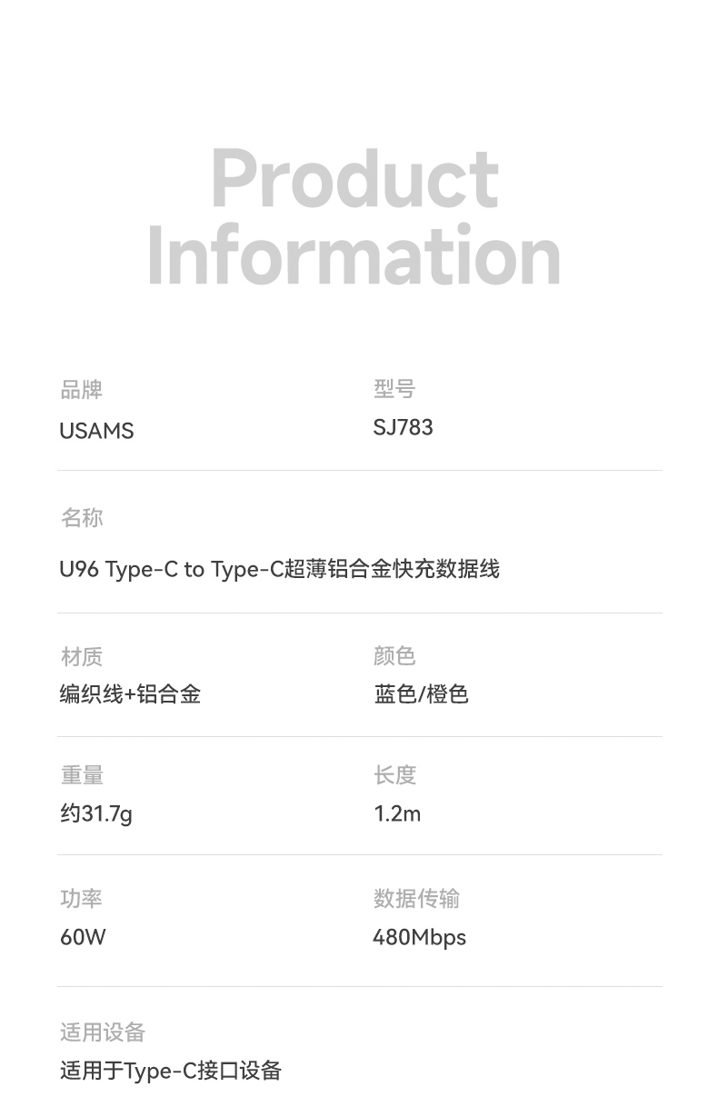 SJ783 U96 60W超薄铝合金快充数据线C TO C 1.2m