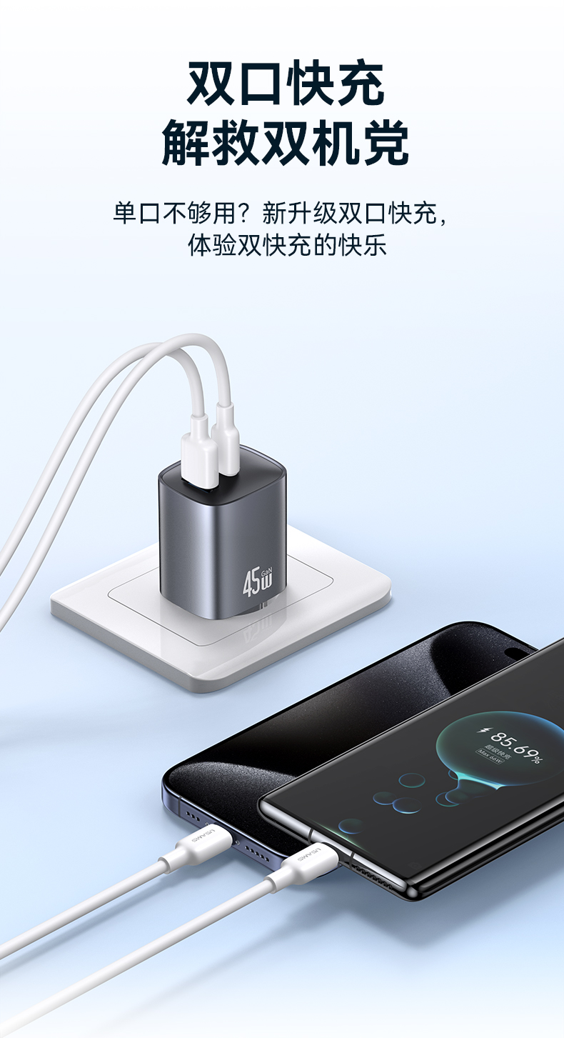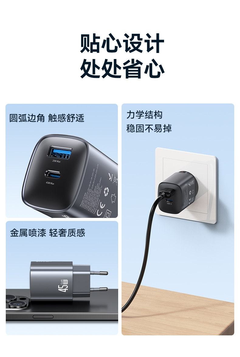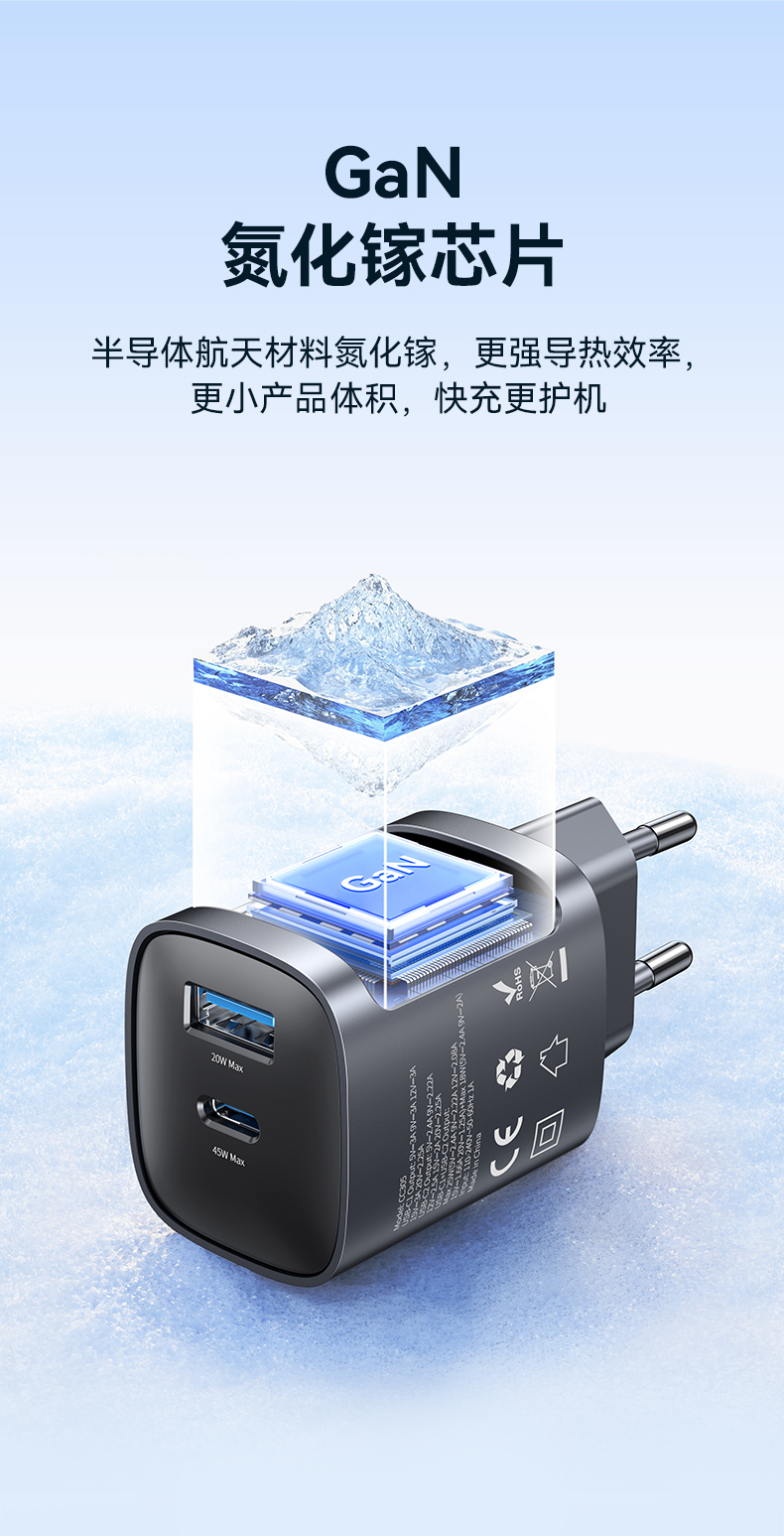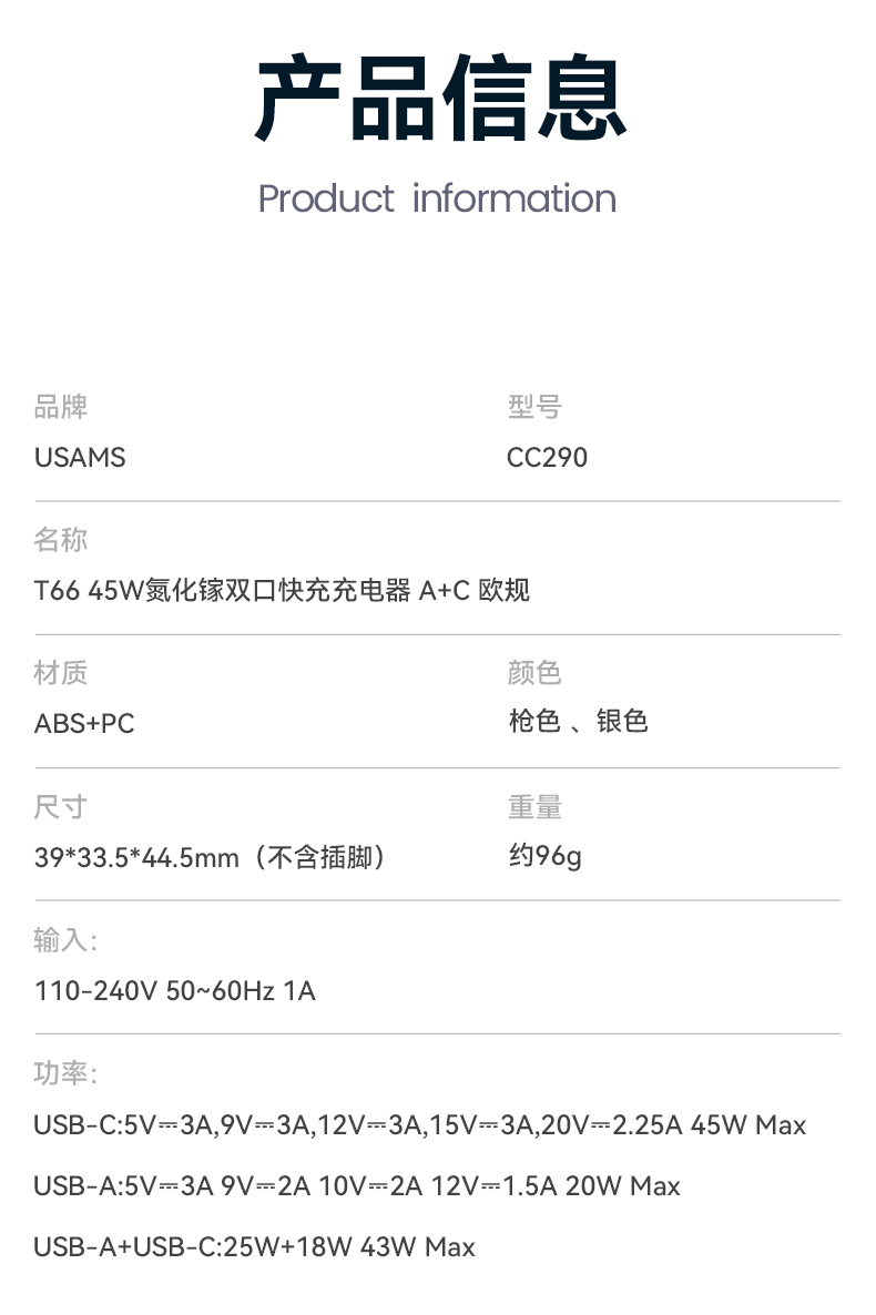 CC290 T66 45W氮化镓双口快充充电器 A+C 欧规