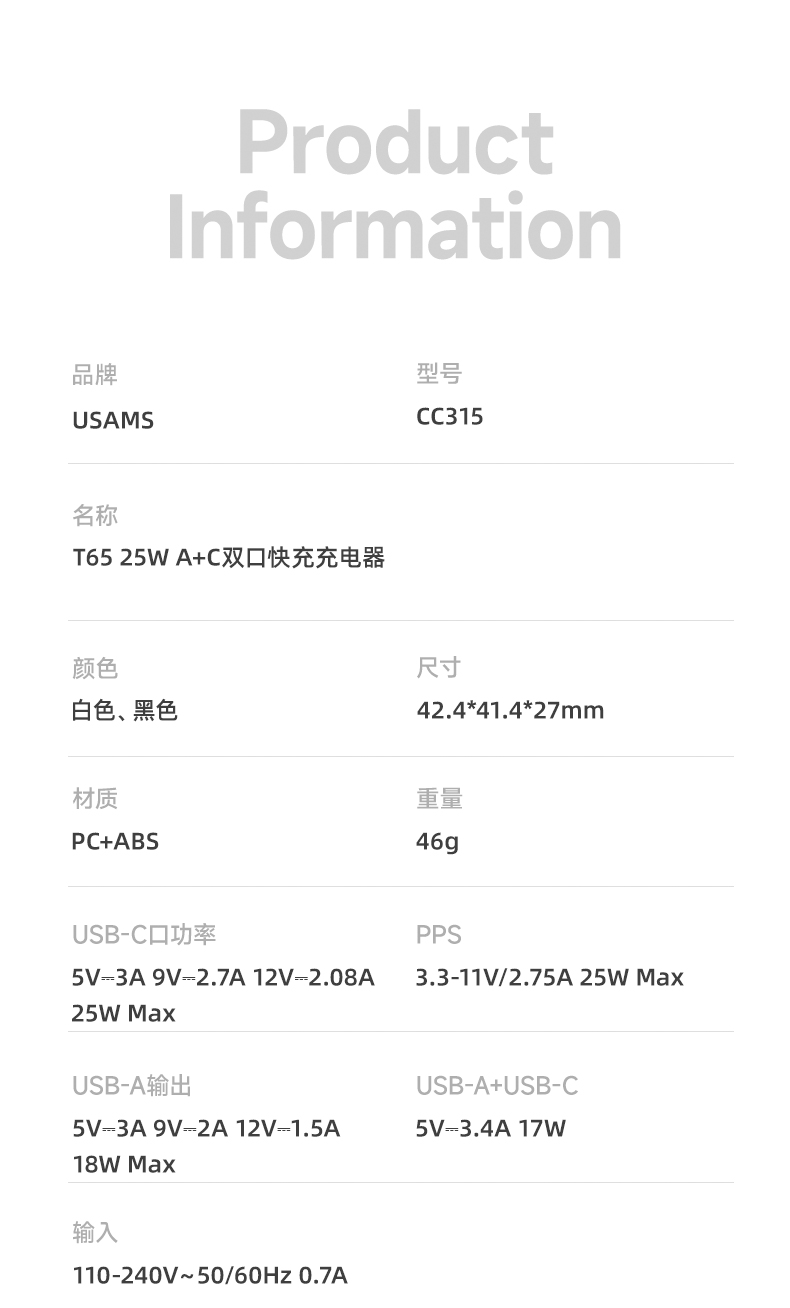 CC290 T66 45W氮化镓双口快充充电器 A+C 欧规
