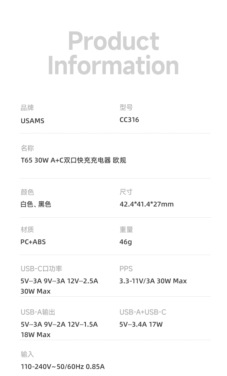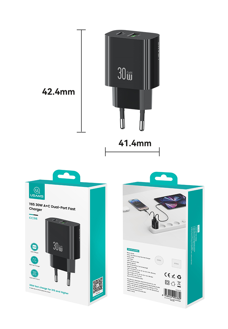 CC290 T66 45W氮化镓双口快充充电器 A+C 欧规