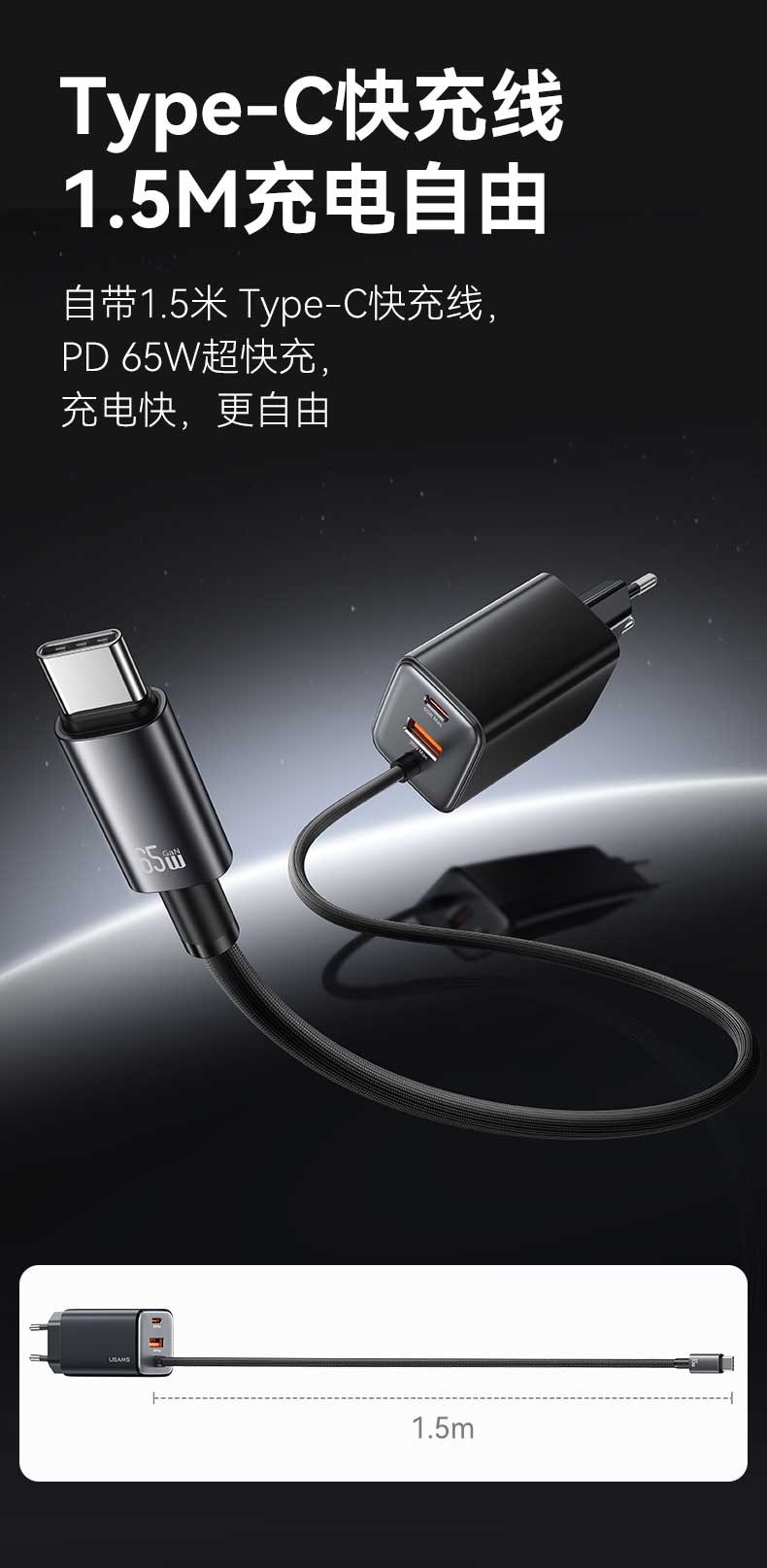 1、1.5mType-C自带线