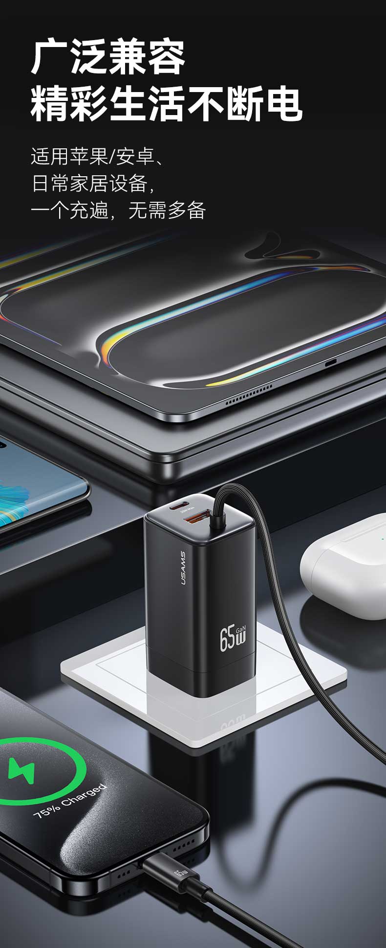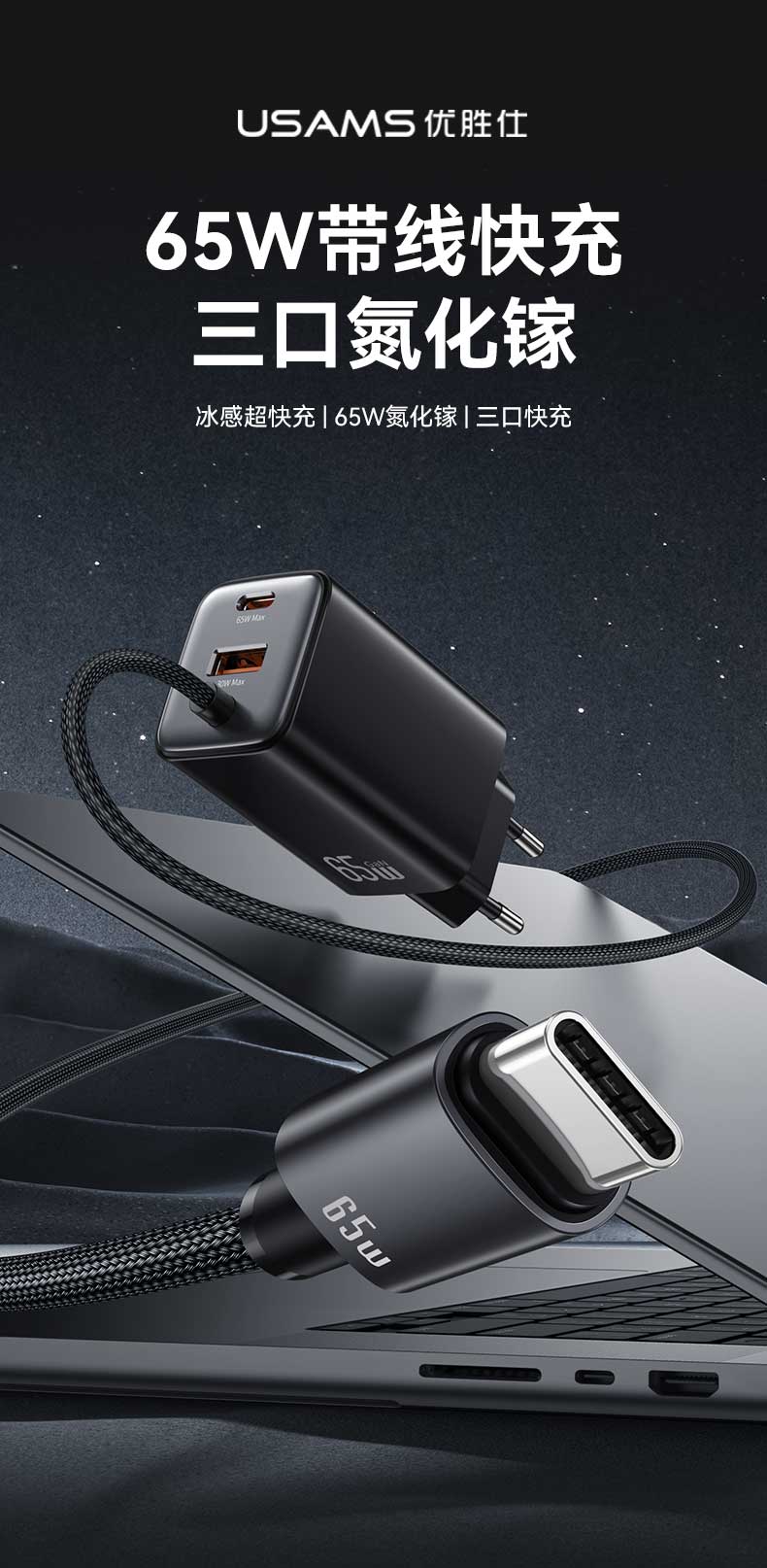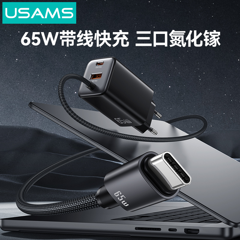 CC266 捷充系列 65W氮化镓ACC三口自带线快充充电器 欧规