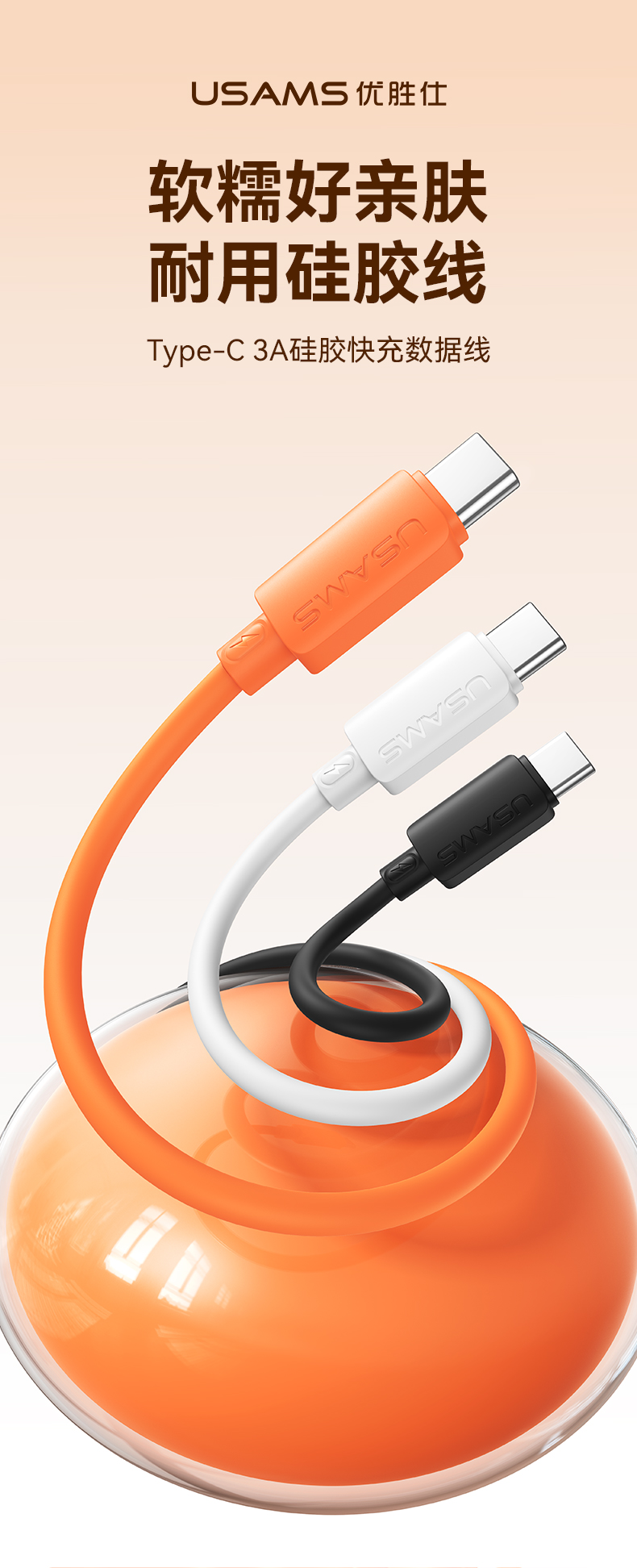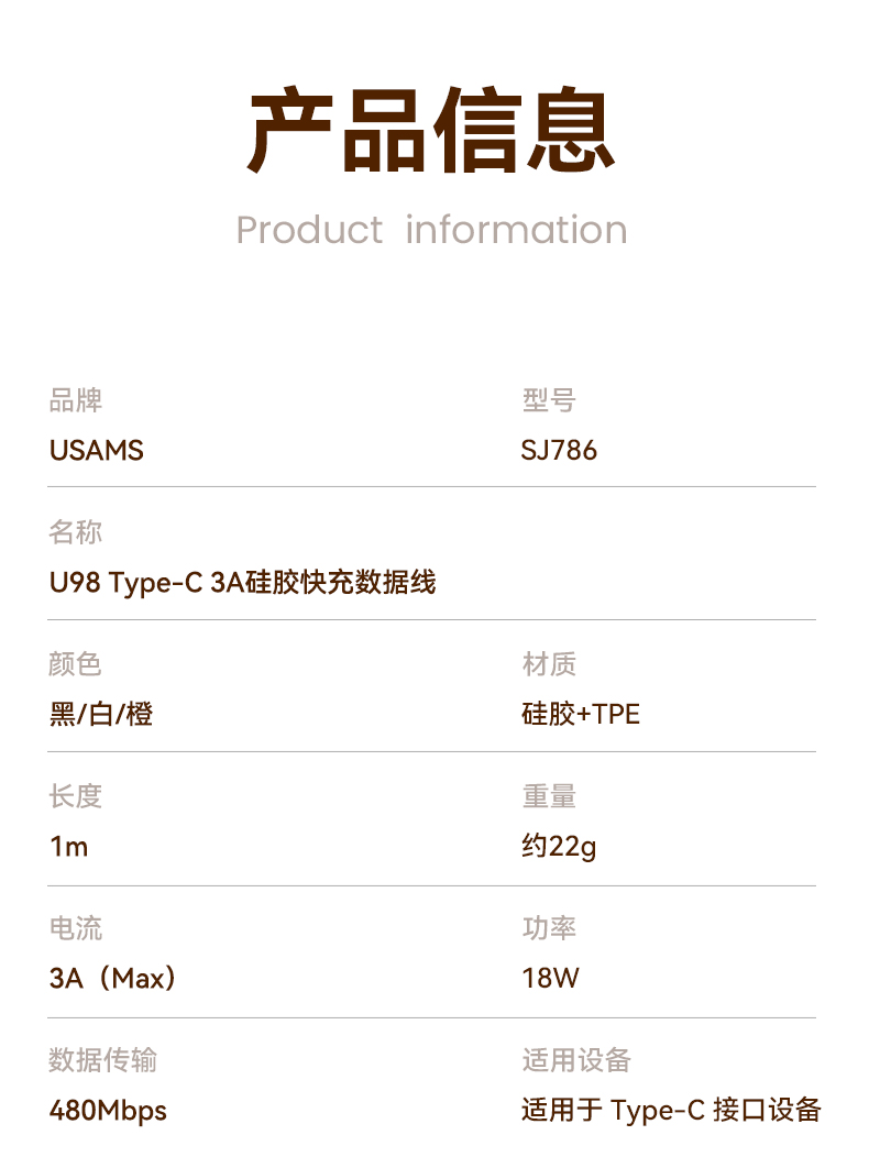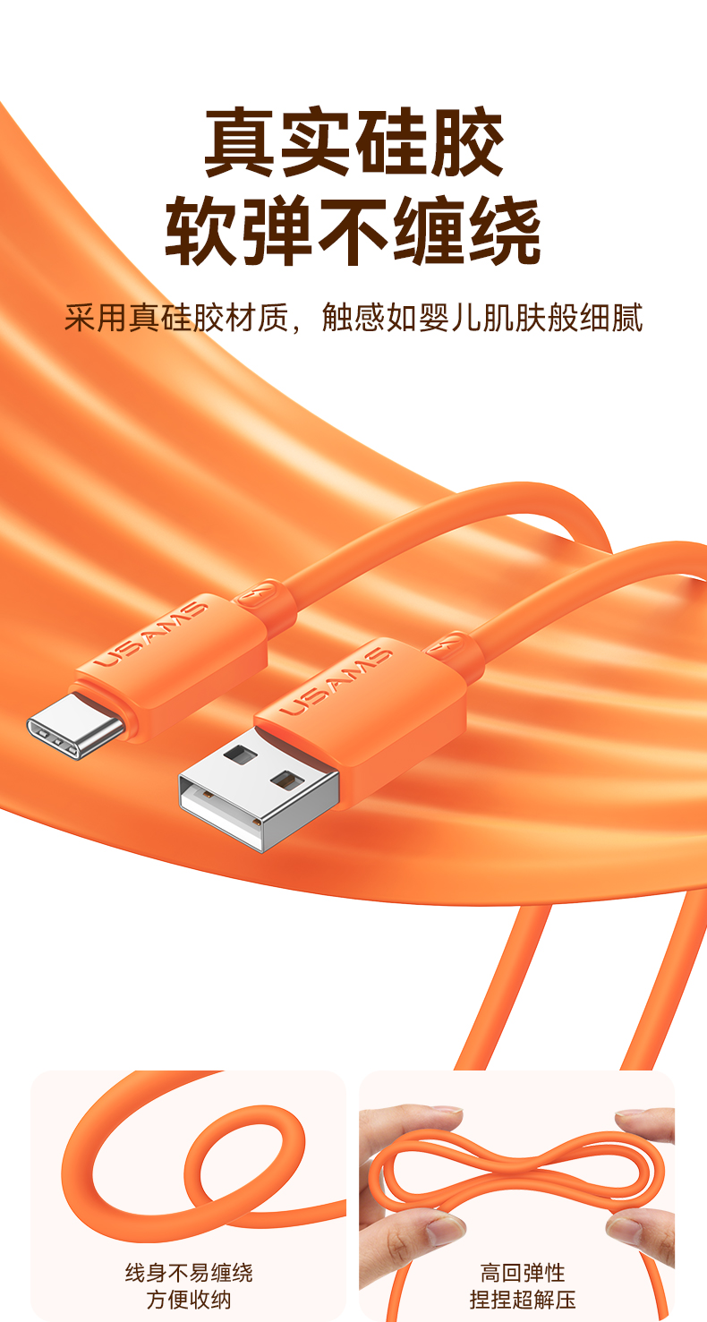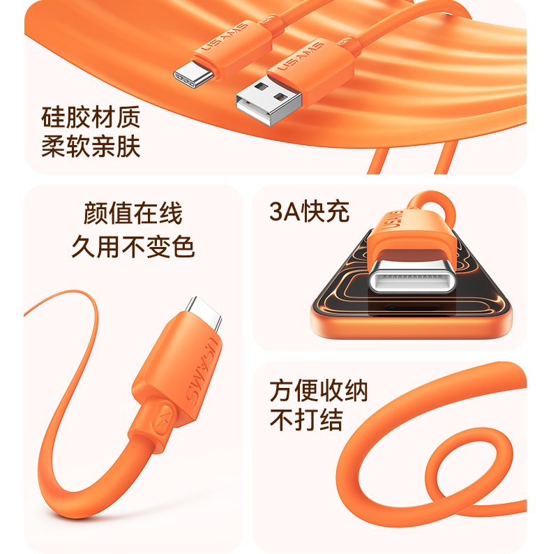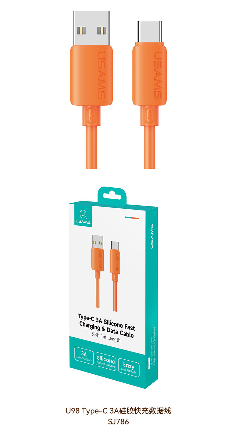 SJ786 U98 Type-C 3A硅胶快充数据线